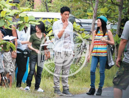 周五Bosco早上6时又随剧组出发往宜兰郊区一幢豪宅拍摄,一直拍至中午剧组才到室外松一松,期间Bosco眉头深锁狂吸烟,中午和晚饭时分均有人将外卖送到片场。每有拍摄空档,Bosco便拿出电话发信息,知情者指:“他每天拿着电话发短讯,很长篇的样子,不知道发给谁,有时问我们‘省’字、‘咎’字怎么写,‘磨合’又怎么写,猜他向女友写信求饶吧!”这次赴台拍戏一个月,为免再惹绯闻,Bosco聘用了短发女助手和一名男司机,日拍夜拍,两餐也留在片场,连日所见他收工后也留在酒店房中,暂时修心养性。