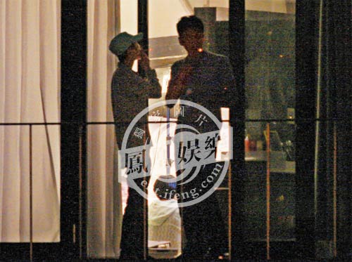 与女工作人员在露台吸烟谈心事